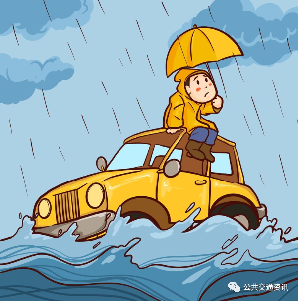 城市發(fā)生洪澇災害時,道路積水嚴重,公路可能被沖毀。若不注意觀察水深,涉水通過積水路段會導致公交車熄火、被淹,洪水甚至會沖走公交車。