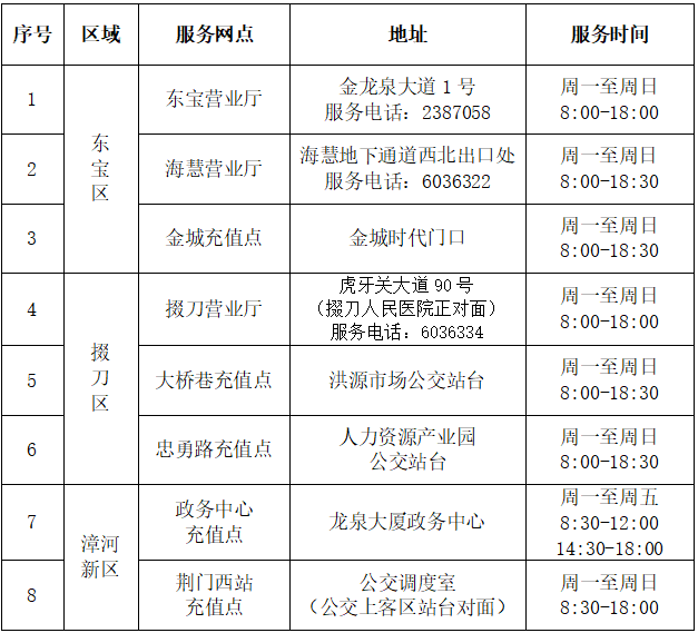 (一)服務(wù)網(wǎng)點一覽表