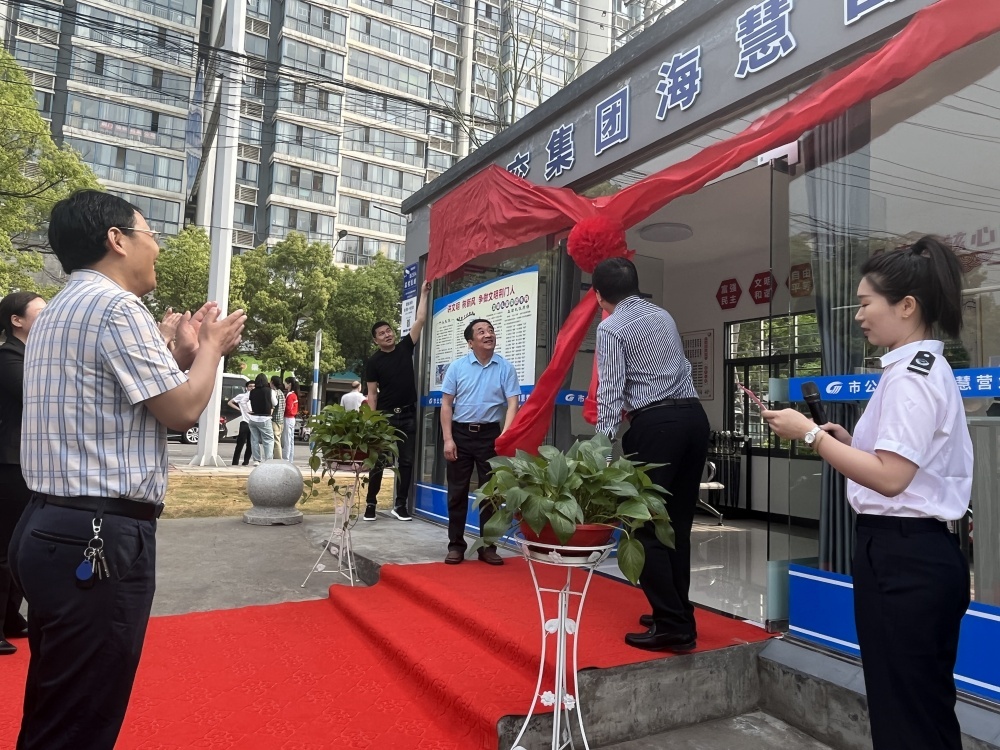 19日,上午9時18分,公交海慧營業(yè)廳開業(yè)儀式正式開始,市政府國資委三級調(diào)研員田運華、市城市客運管理處處長劉來斌共同為營業(yè)廳進行開業(yè)揭牌儀式。