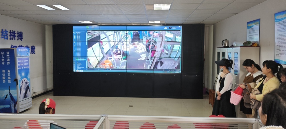 圖/在客服調(diào)度中心,整墻的大屏幕,變動的車輛信息和實時車載畫面,深深吸引了同學(xué)們的目光。