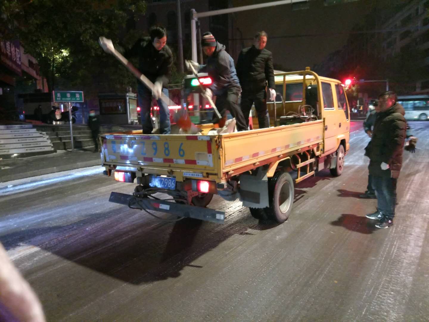 以雪為令!荊門(mén)公交人凌晨4點(diǎn)撒鹽除冰 確保市民平安出行