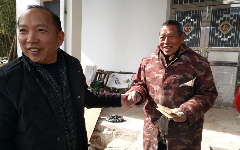 走訪中,扶貧負責人與李召林、李華山、周啟明等村民親切交談,對他們2017年脫貧情況進行了了解,并送上新年慰問金。村民拉著扶貧負責人的手表示了對扶貧組到來的萬分感謝以及黨和國家對他們的關懷之情。