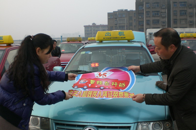 昨日,市出租汽車(chē)公司雷鋒車(chē)隊(duì)舉行的“雷鋒在行動(dòng)”免費(fèi)接送志愿服務(wù)活動(dòng)如期舉行,40臺(tái)貼有活動(dòng)標(biāo)志的出租汽車(chē)在中心城區(qū)大街小巷穿梭,免費(fèi)接送老人、殘疾人及弱勢(shì)群體乘客258人次。