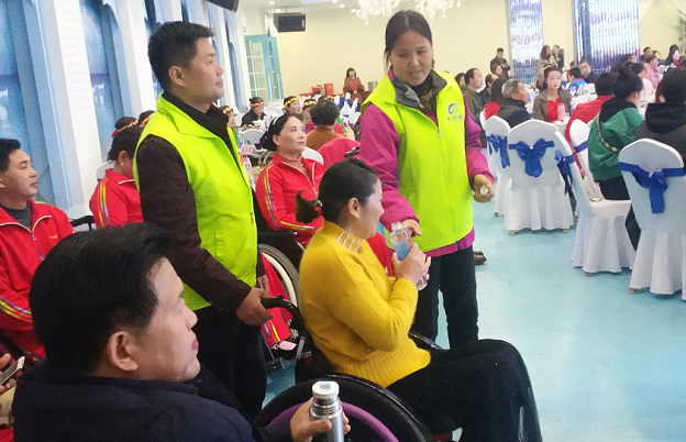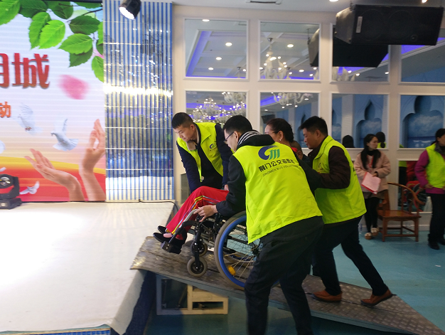 11月30日在荊門市殘疾人聯(lián)合會(huì)、荊門市智力殘疾人及親友協(xié)會(huì)、荊門市圓夢愛心幫扶會(huì)舉辦的主題為“包容殘疾人 創(chuàng)建文明城” 的“2018‘國際殘疾人日’紀(jì)念活動(dòng)中,16名荊門公交志愿者在引導(dǎo)、簽到、幫助殘疾人出行、舞臺(tái)道劇、督導(dǎo)等志愿活動(dòng)中,受到殘疾朋友們真誠的感謝和與會(huì)嘉賓、領(lǐng)導(dǎo)們的一致好評(píng)。