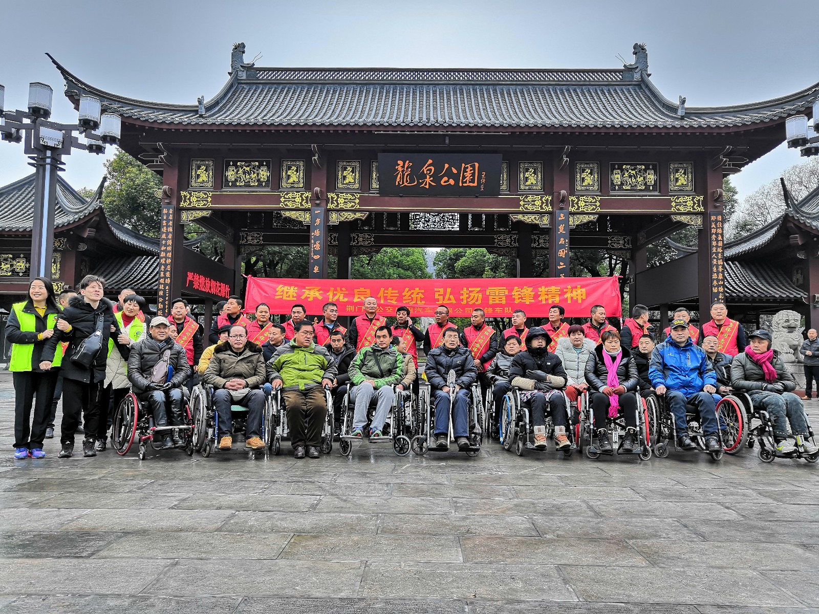 10時,車隊到達龍泉公園,在新修建的公園門口殘疾朋友集中合影留念,在公交黨支部的帶領(lǐng)下共同宣讀入黨誓詞,唱雷鋒歌。在融洽歡樂的氛圍下開始了游園之行。
