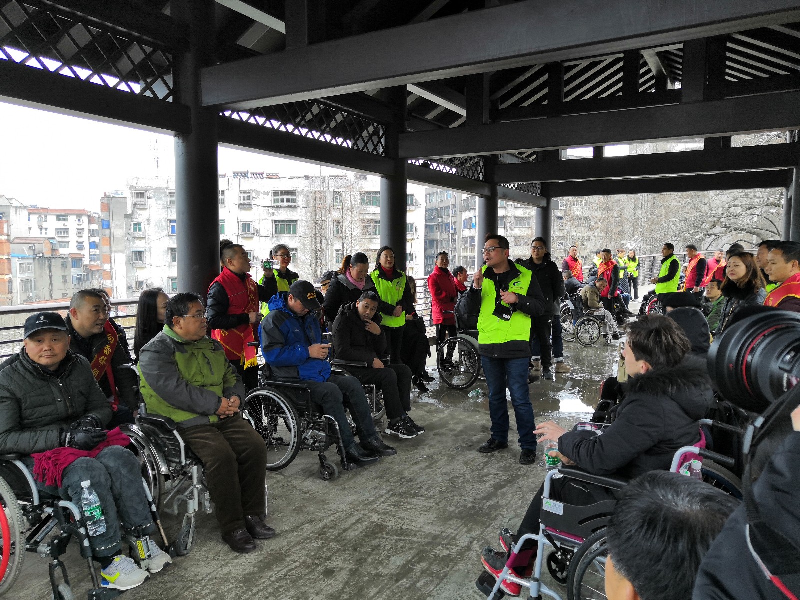 在公園新修建的盤山橋上,志愿者們推行著輪椅,與殘疾朋友以新的視角欣賞著山園美景,一路上歡歌笑語。在涼亭里大家輪流著唱歌助興,敞開心扉,訴說著心中的故事。